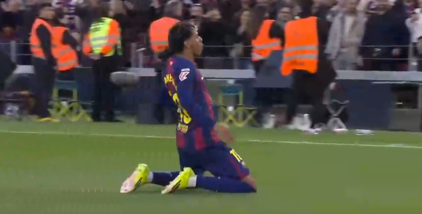 进球之后,亚马尔先是滑跪庆祝,随后与巴尔德一起翩翩起舞。
